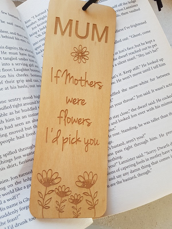 The bookmark is laser engraved onto quality 1.8mm European Birch measuring around 50mm wide and 150mm high and sealed with a clear varnish.